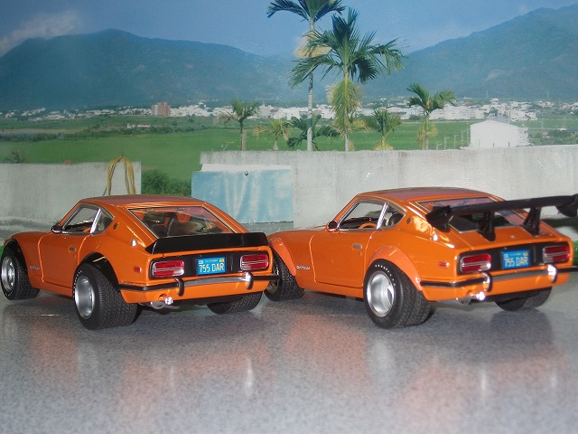 これはDATSUN240Z改(外装のみ)です。ホイール、バックミラーのバリエーションの見本です。