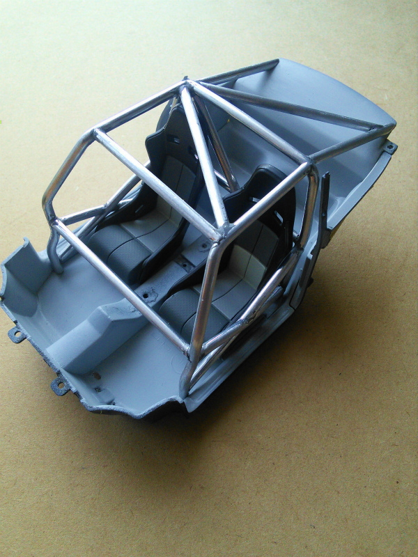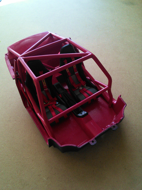 ボディの塗装が完了し仮組の状態です。内装もいい感じですね。