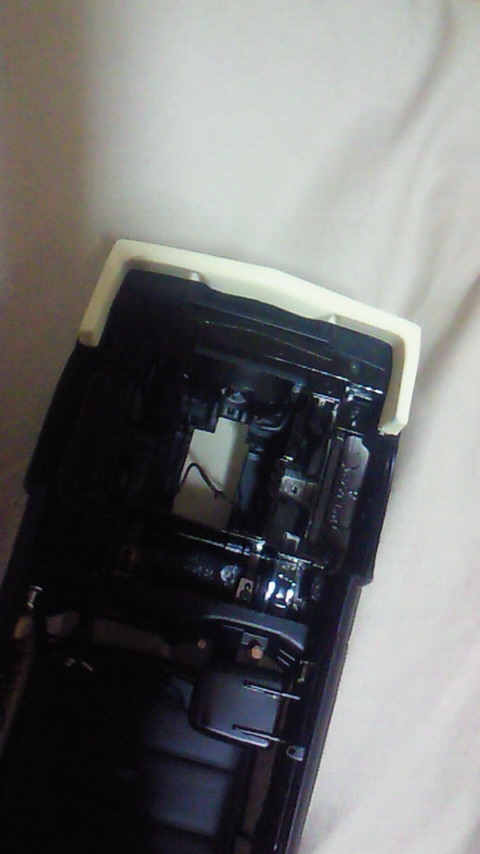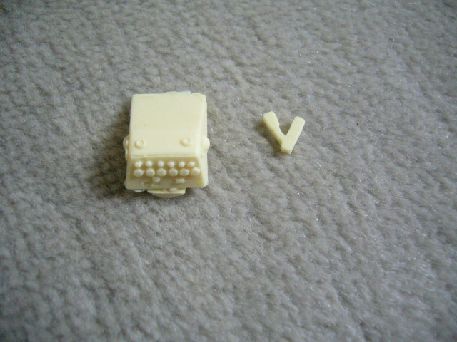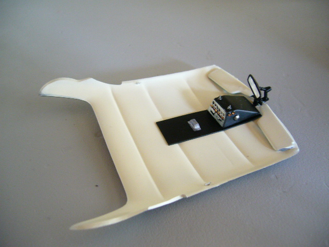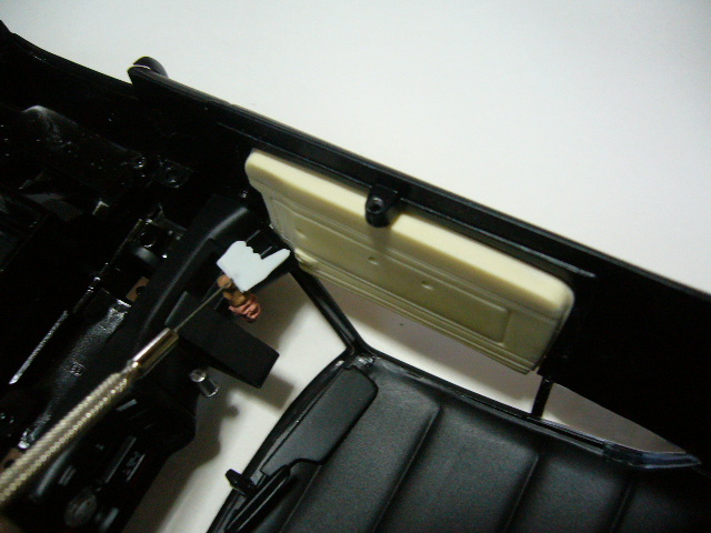 天井のセンターにある無線機と、シートを前後するためのレバーです。バリとって修正し、塗装して