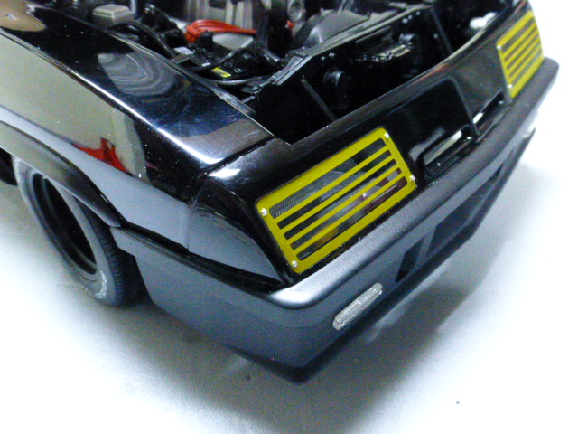左右のリアスポイラー部にレジンとパテを使用してつじつまあわせをしてあります。