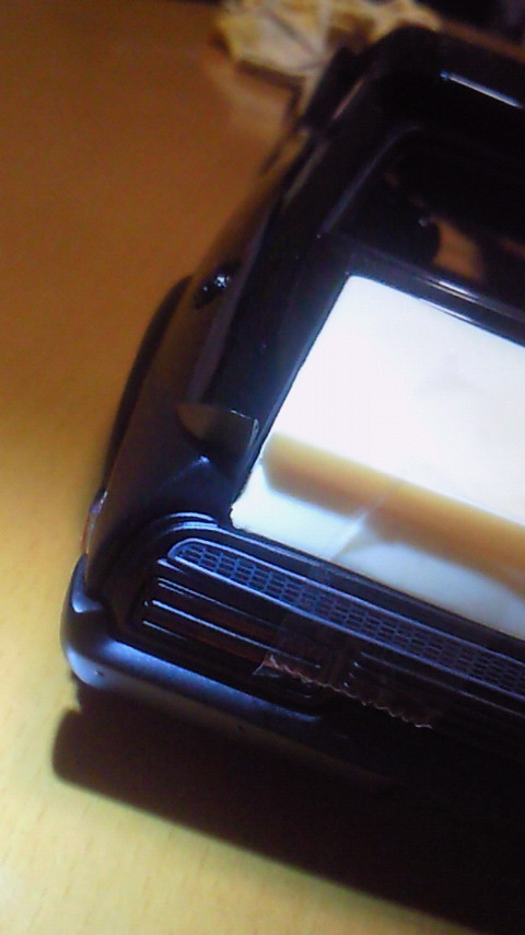 早速、一番目立つフロントチンスポイラーを車体に合わせます。トランスキットの写真を見ると、