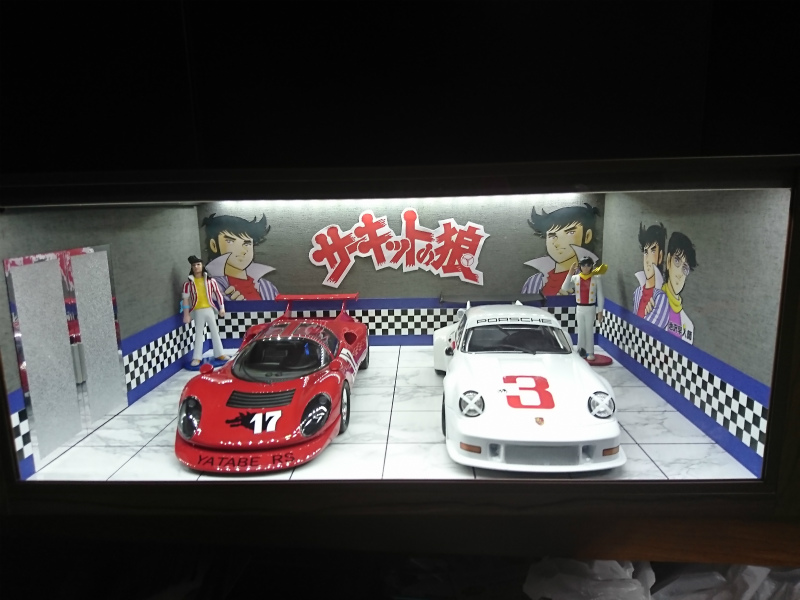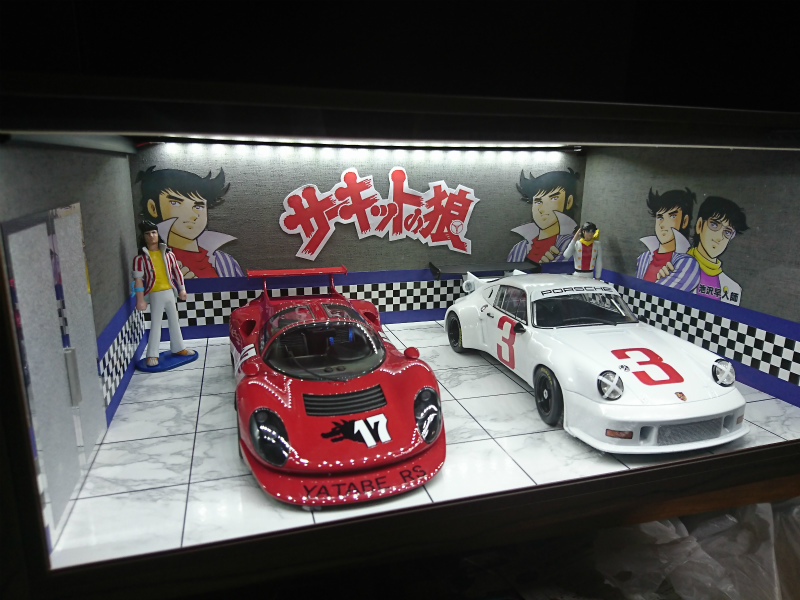 サーキットの狼ミュージアムを意識して作りました。早瀬のポルシェは